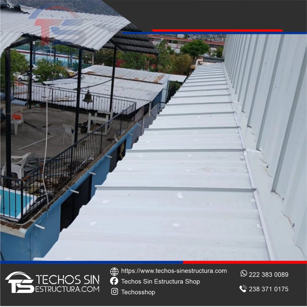En esta intervención se colocó lámina Pintro nueva, además de bastidores reforzados y tímpanos, para garantizar nuevamente la protección y funcionalidad del espacio techado.